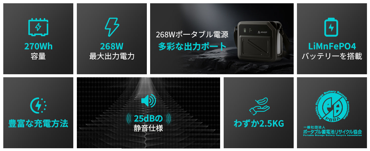 ARKEEP P-72 ポータブル電源 270Wh(肩掛けタイプ)